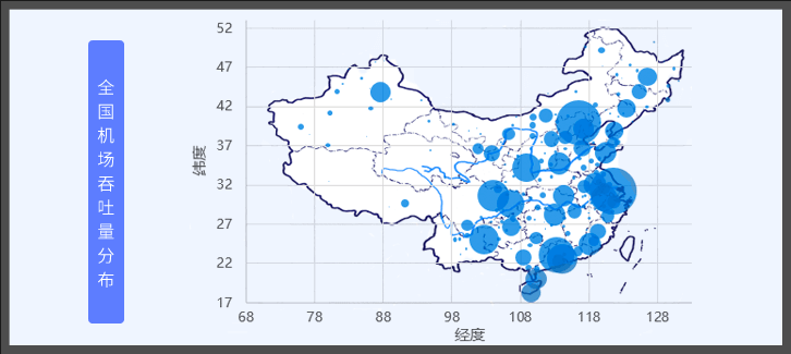 用气泡图展示全国机场吞吐量数据