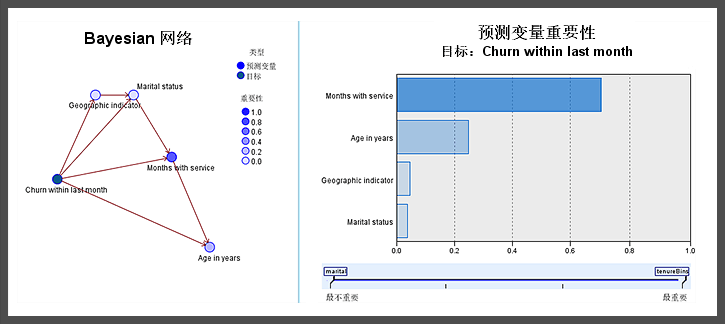 在Modeler软件中进行贝叶斯网络建模,导入预测数据对用户流失率进行预测。