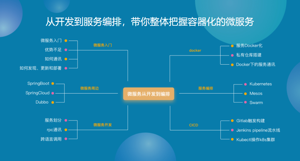 从整体上把握微服务,体会服务Docker化,理解服务编列,以及主流的服务编列结构——Kubernetes,了解它的架构,知道它的运作原理,知道怎么装置、运用及怎么部署微服务